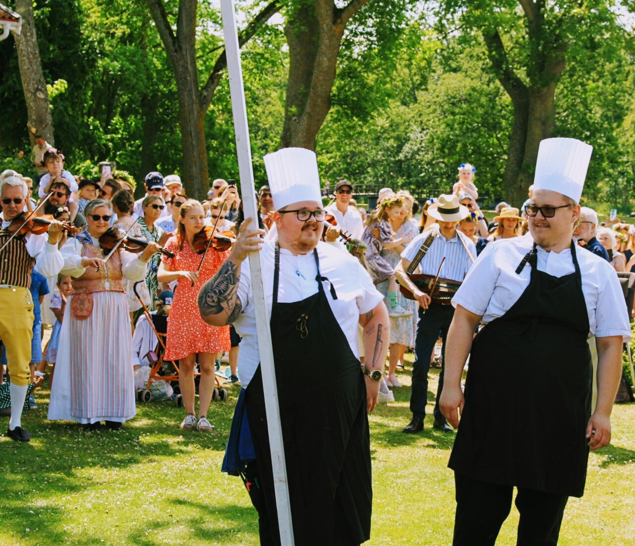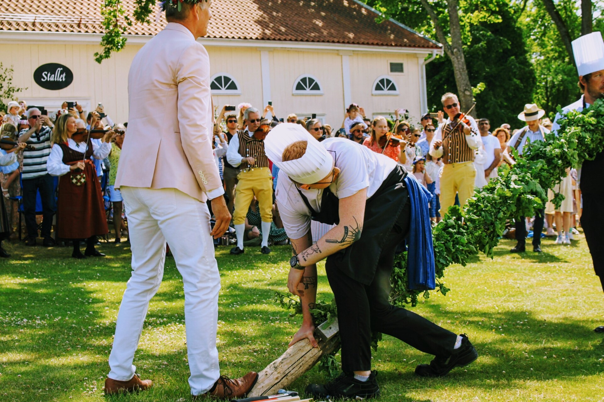 - Midsommartrubadur står för underhållningen med musik, sång och midsommarstämning