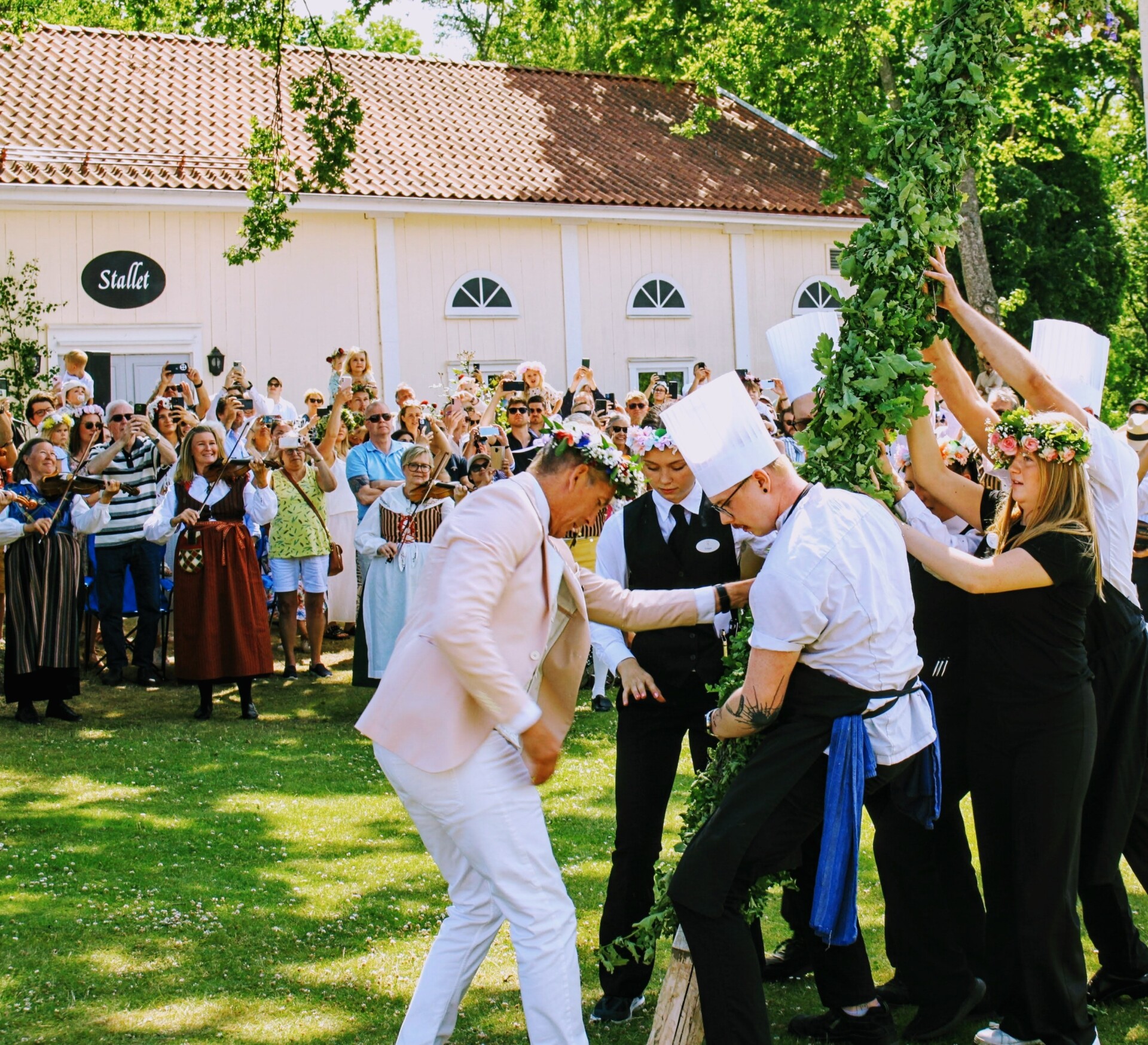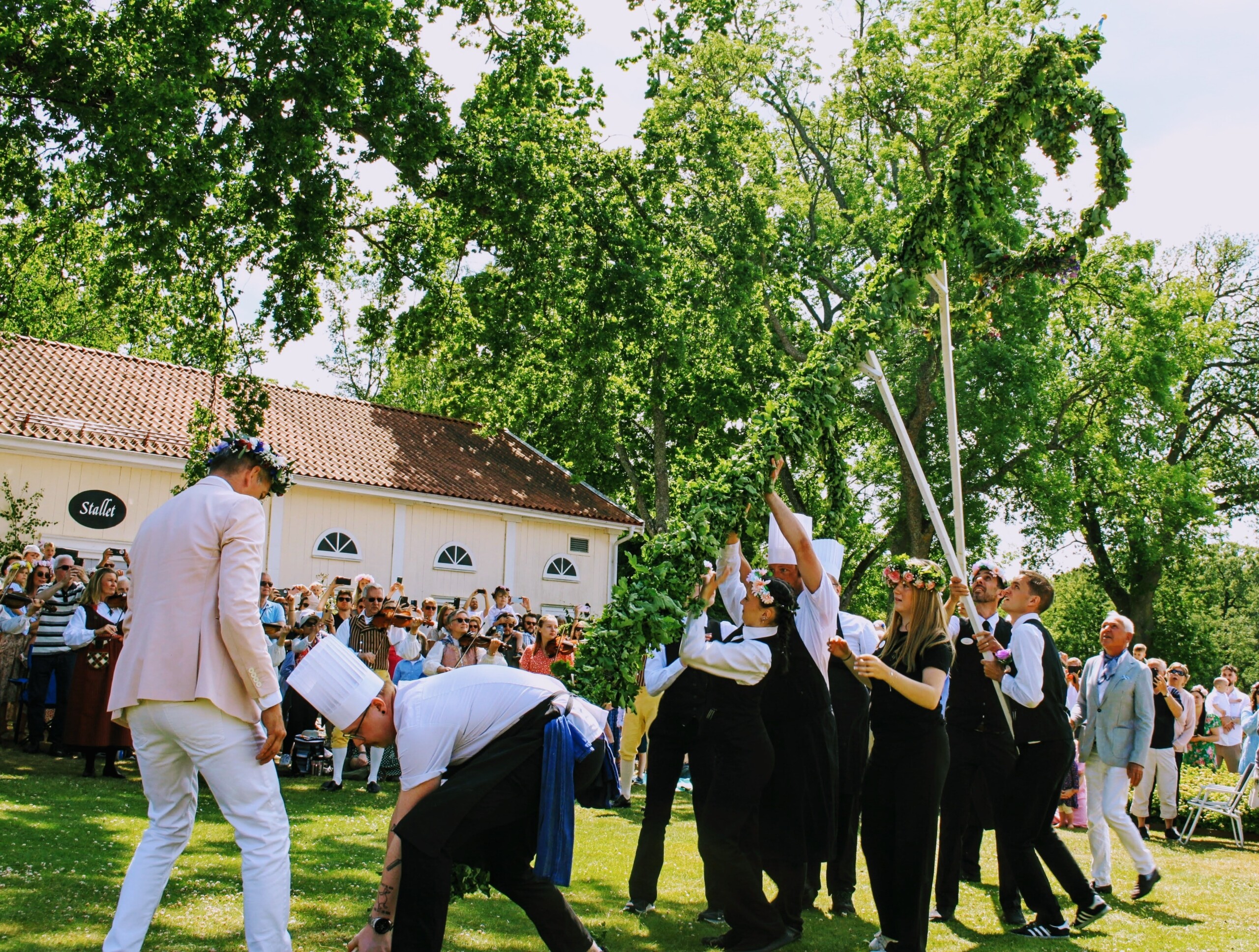 - Resning av midsommarstången kl. 13:00 följt av traditionell dans och sång